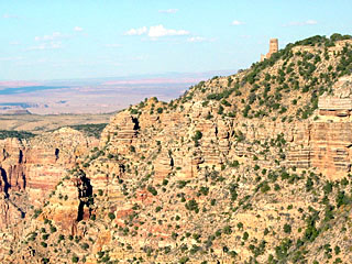 グランドキャニオンへの道、AZ-64に入ってちょっと行ったところにある Little Colorado に寄ってみる。駐車場に車を停めると、展望台に行くためにはナヴァホ族のアクセサリーの露店街を通り抜けなければならない。トルコ石に銀の装飾のものが多いアクセサリーは、お値段もお手頃。多くの観光客が金を落とすに違いない。・・・結局自分でも落としてしまった。彼女へのおみやげ第2弾はトルコ石のネックレス。
